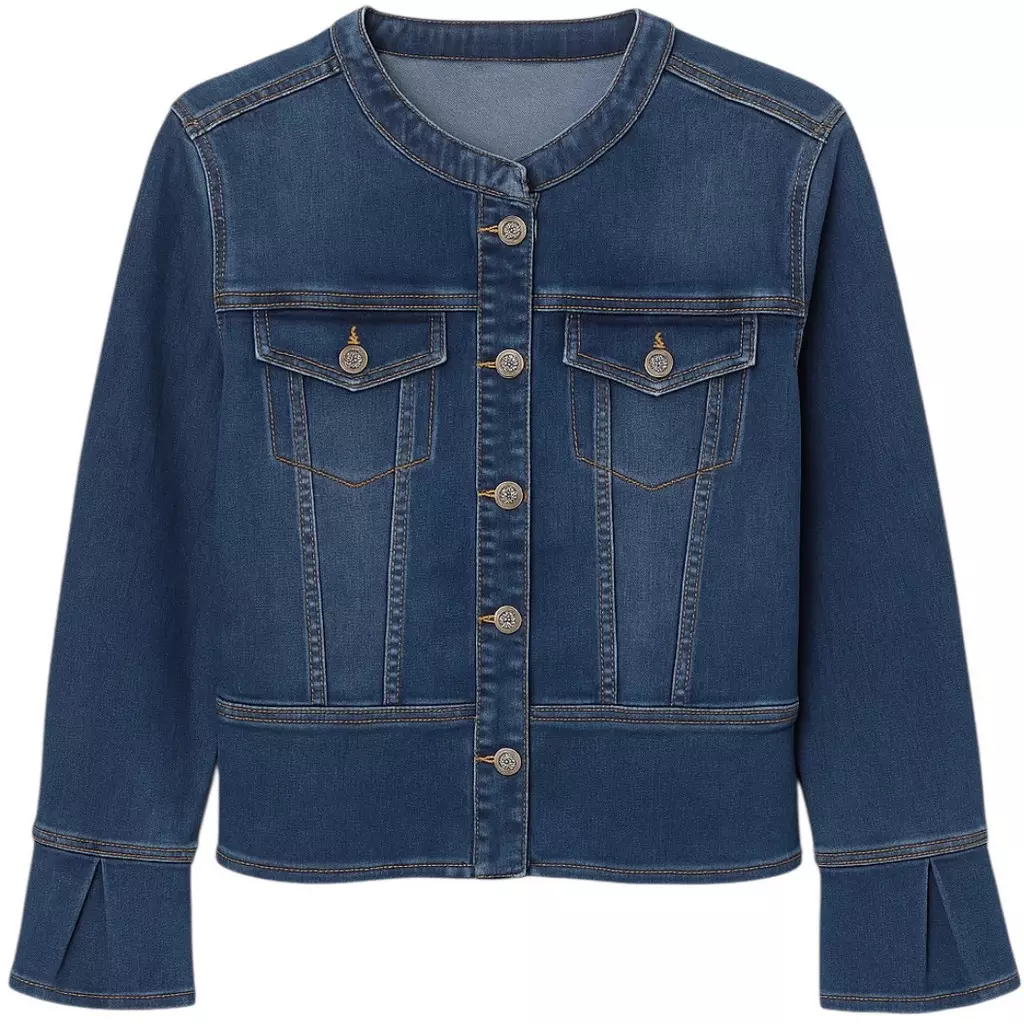 Jakker med klassiske denimjakke-trekk, trekvartlange ermer med plisserte detaljer.