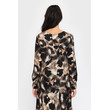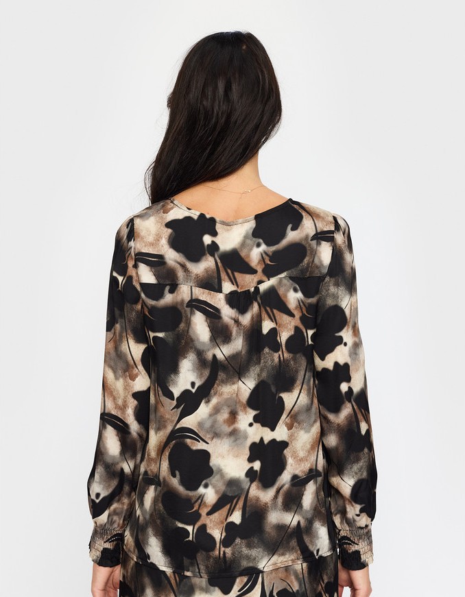 Bluse med rund hals og lange ermer med smock-finish. Blusen er laget i et silke/viskose-materiale.