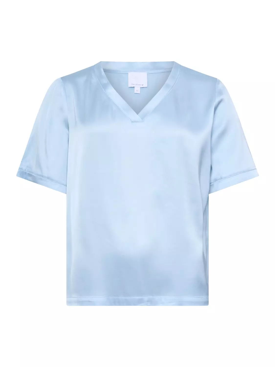Enkel og fin topp med v-hals og kort arm. 97% viskose og 3% elastan