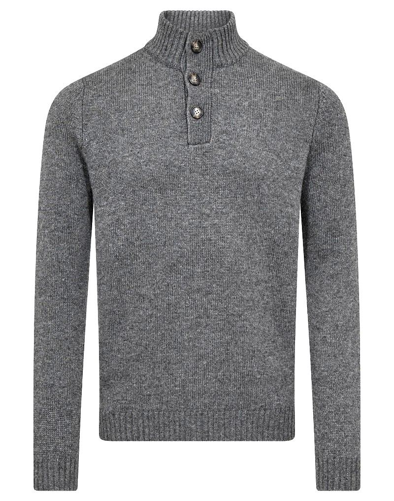 Kraftig herregenser med halv knappelukking i en myk blanding av lammeull og tencel. Lukkes med hornknapper og diskret gummilogo på ermet. Perfekt for strikking på kalde vinterdager.