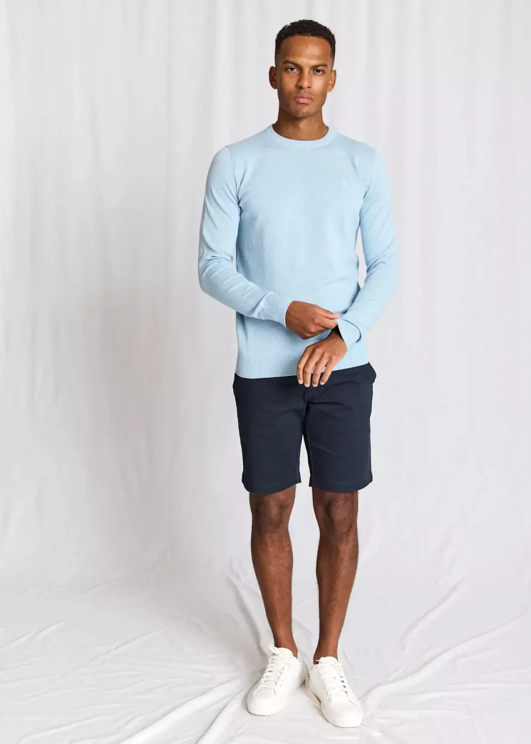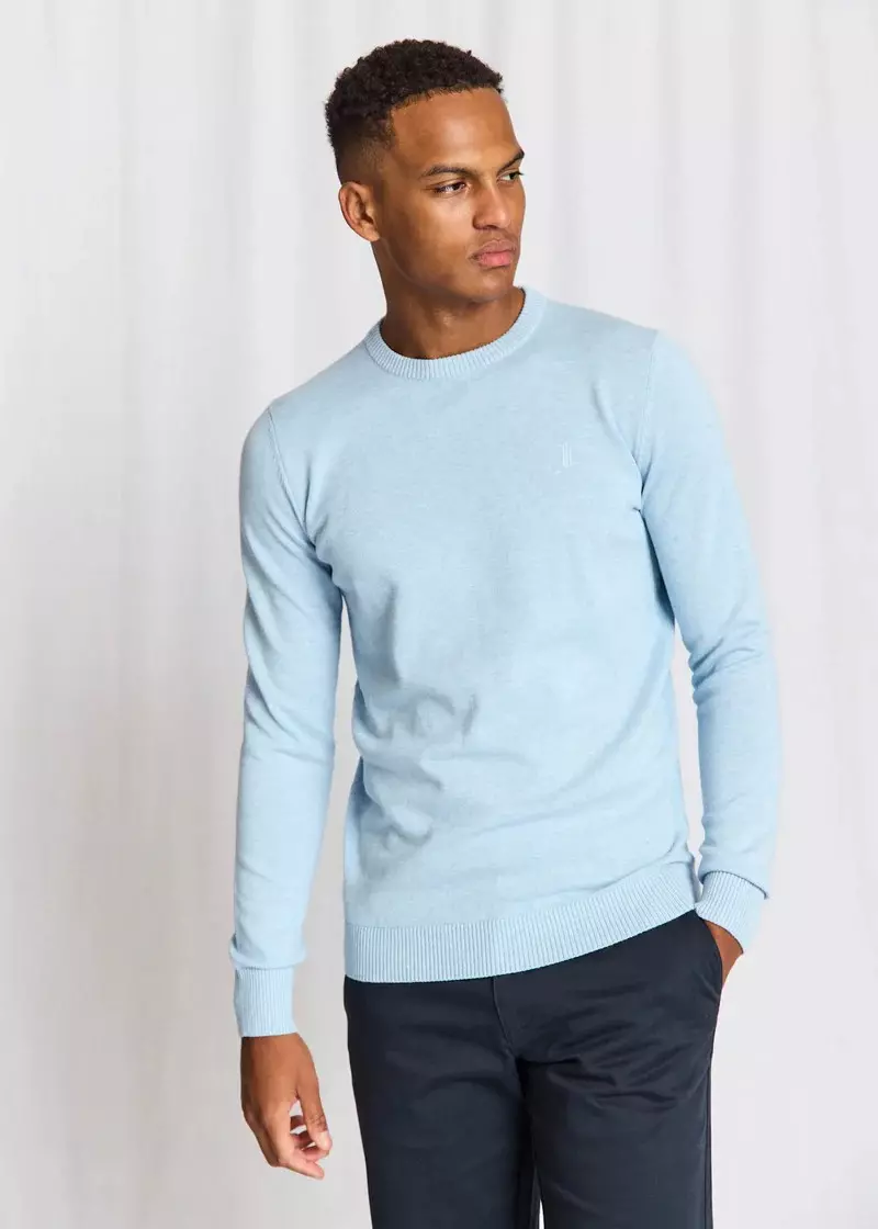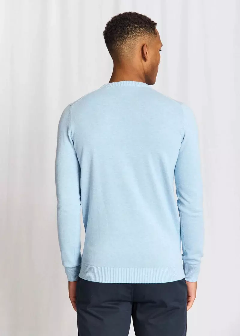 Klassisk o-neck sweater i 100% bomuld med diskret tone-i-tone broderet logo på brystet. Sweateren har et tidløst fit, som gør den enkel at style til både hverdag og mere afslappede outfits.