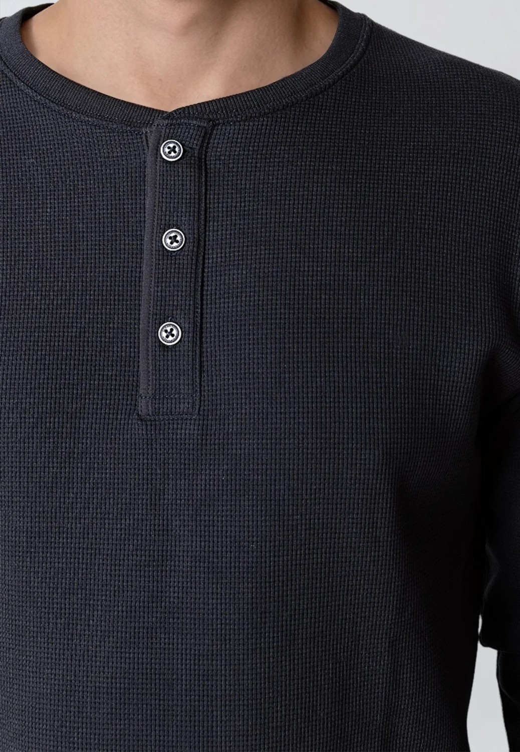 En tidløs langermet bestefar t-skjorte, laget med alle de essensielle detaljene. Med knappelukking, klassisk teksturert stoff, avrundet hals og lange ermer, blander dette plagget stil og komfort uanstrengt. Designet med en vanlig passform, er den perfekt for hverdagsbruk.