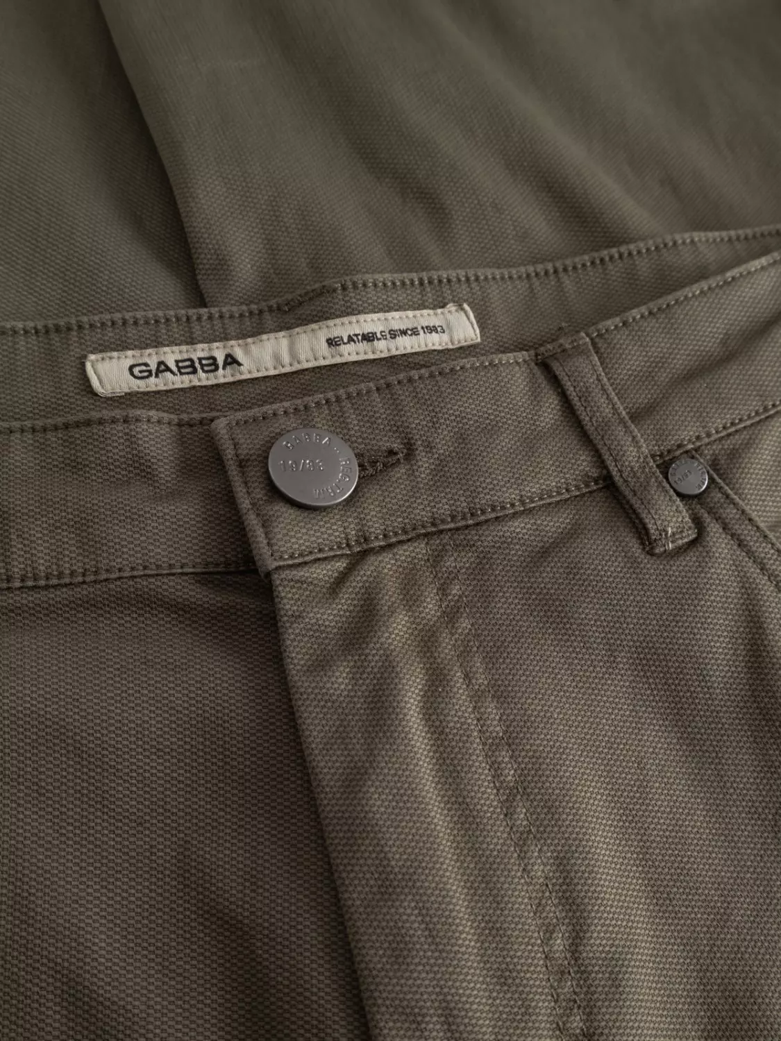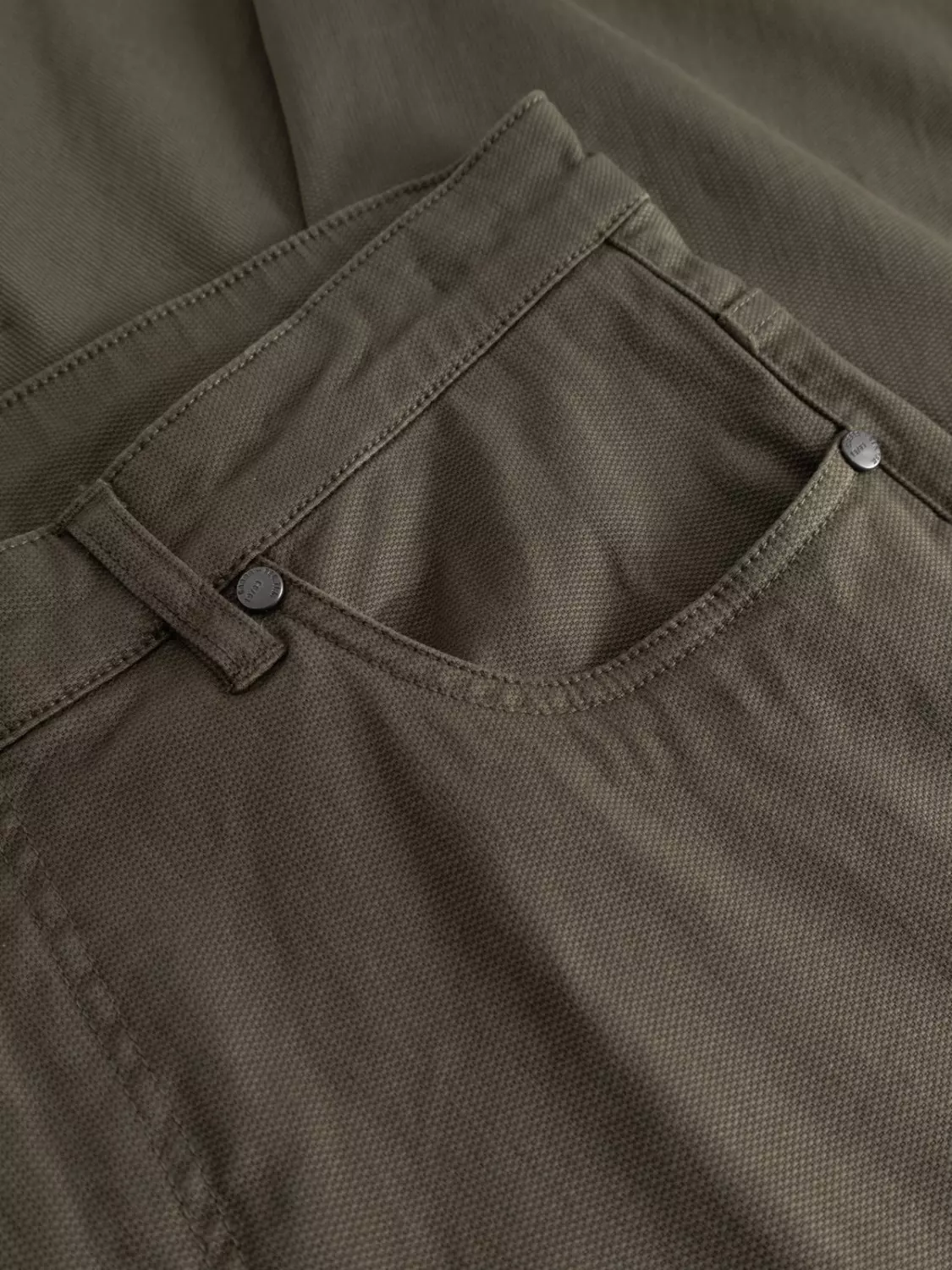 Den fargede klesfargede finishen fremhever stoffet med en rik, jevn tone, mens det klassiske 5-lommers designet gir tidløs funksjonalitet og stil.