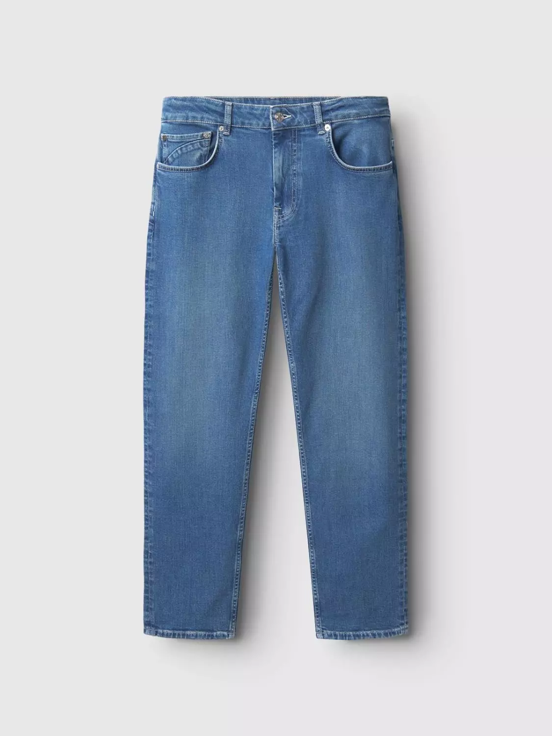 Bukse som er regular straight fit, 99% bomull og 1% elastan
