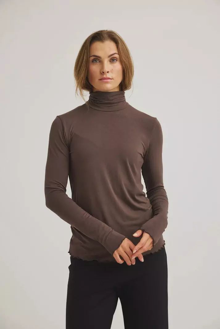 Den myke bambuskvaliteten og lett bølgete overflater på ermene og kanten gir et feminint og moderne uttrykk.
