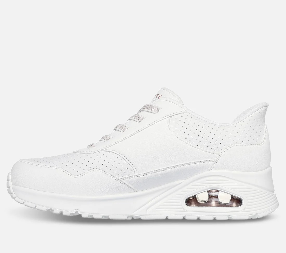 Gå på luft i den utrolig komfortable Skechers Street™ Hands Free Slip-ins®: Uno – Banksia Luxe. Denne slip-on motesneakeren er designet med vår eksklusive Heel Pillow™ og har en ensfarget overdel i duraleather med glitrende elastiske lisser, en myk Skechers Air-Cooled Memory Foam® innersåle og en synlig Skech-Air® mellomsåle.