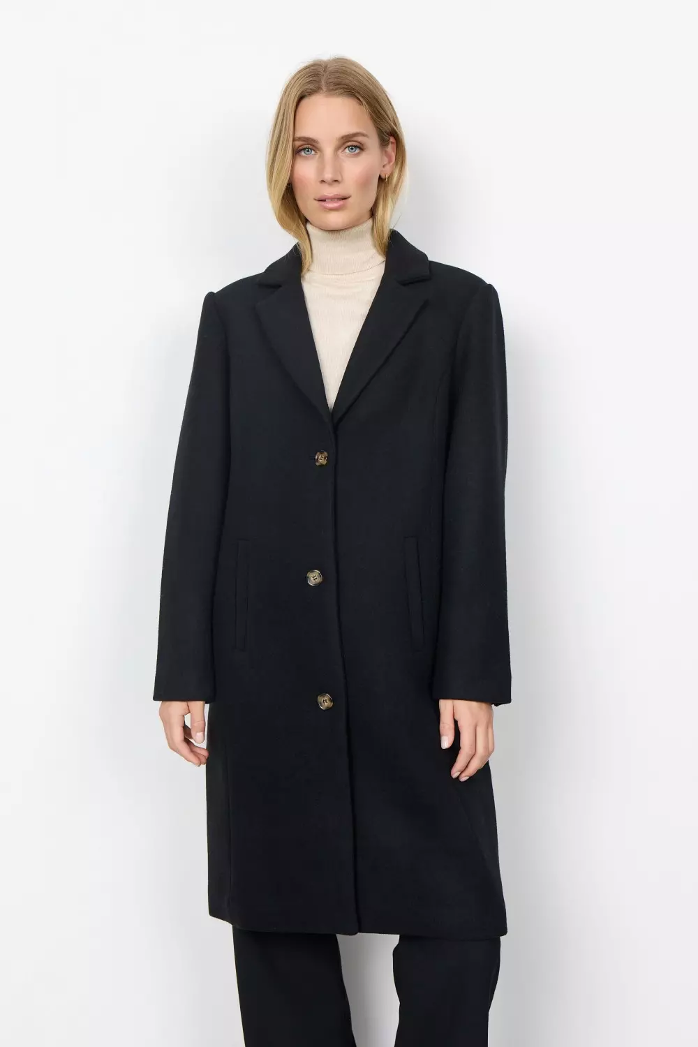 SC-ASTA 2 er en lang, trendy kåpe i en blanding av polyester og ull. Den har tre store knapper og en omvendt krage. Du kan style denne elegante kåpen med et varmt skjerf og store støvler for kaldt vær.