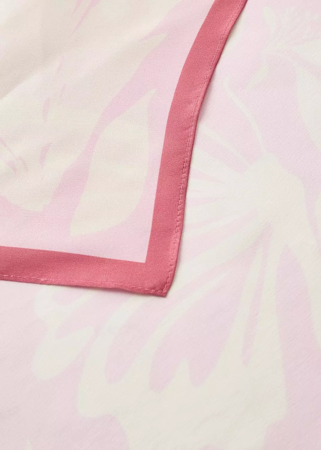 SC-CARREN 1 er et skjerf laget av 100 % silke. Dette elegante skjerfet har et vakkert abstrakt trykk med glatt tekstur og ferdige kanter. Det kan knytes stilig rundt halsen eller festes til en veske for et snev av eleganse.