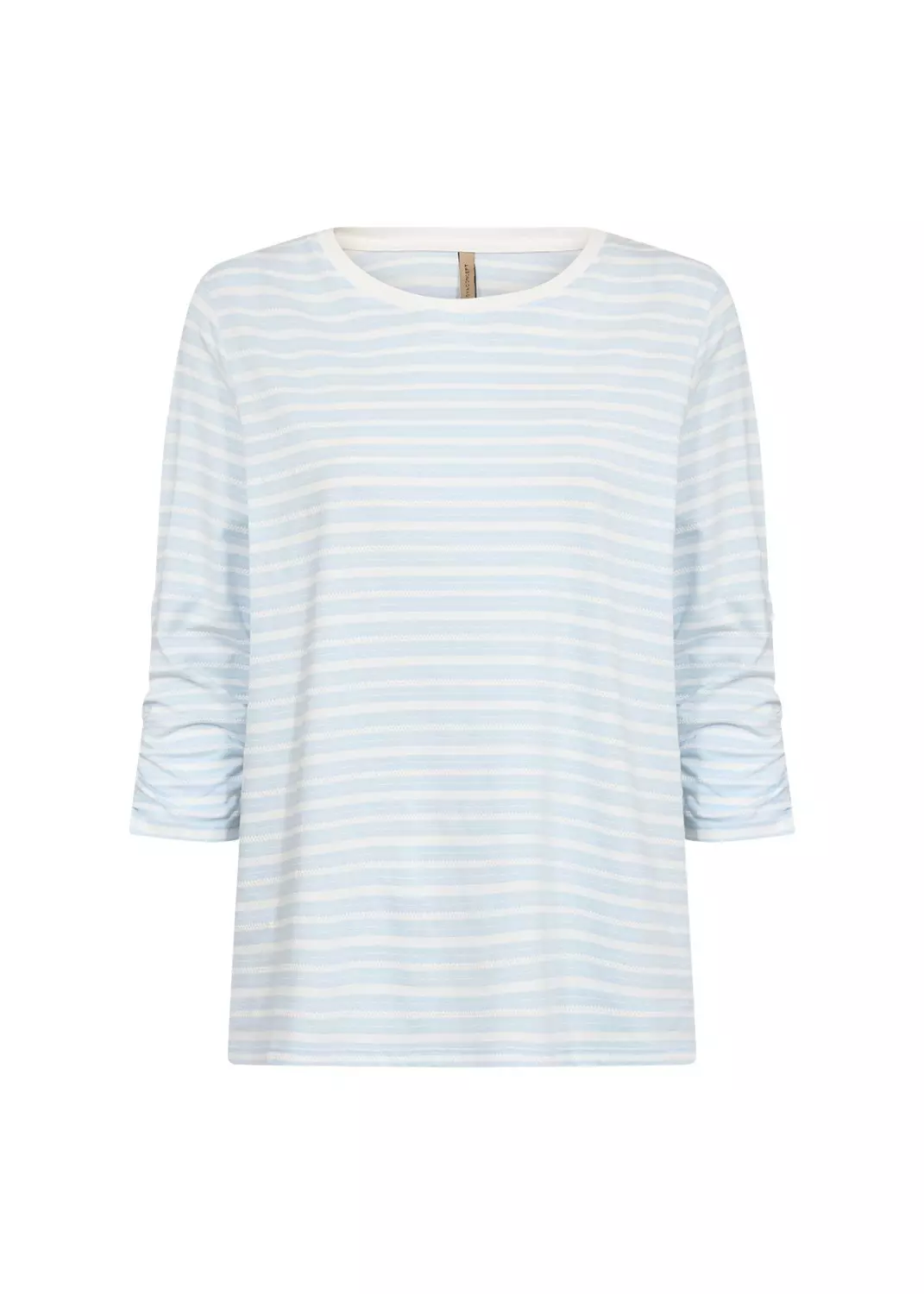 SC-CHANIE 2 er en bluse laget av 100 % økologisk bomull. Denne blusen har rund hals, et lekent stripete mønster og 3/4-ermer med subtile rysjedetaljer. Kombiner den med jeans for et avslappet utseende eller med et skjørt for et kult utseende.