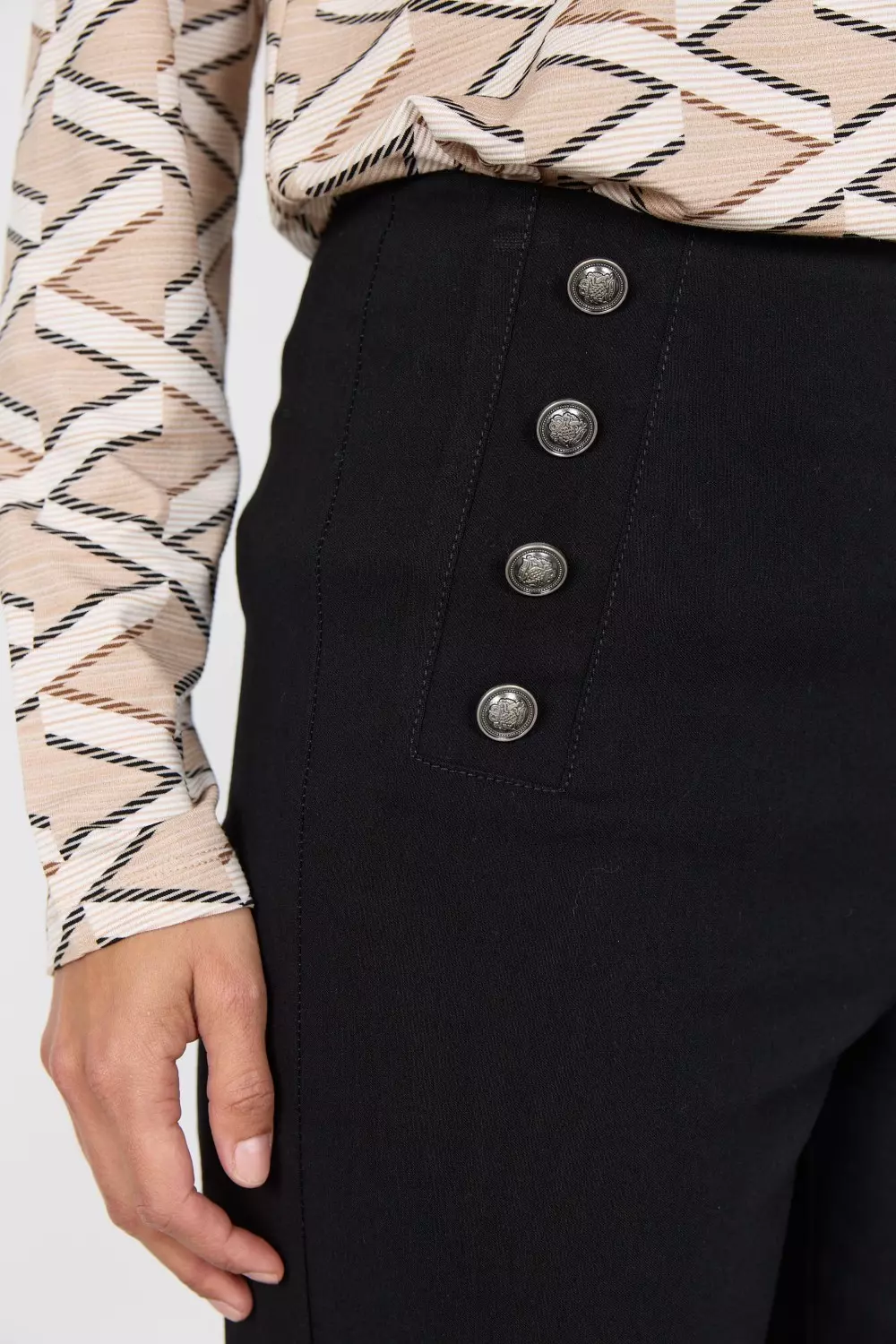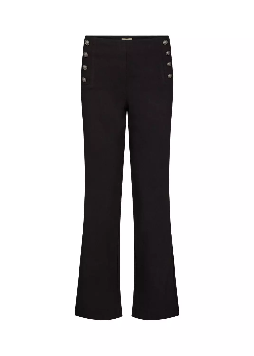 SC-LILLY 54-B-buksene er laget av 70 % viskose, 25 % polyester og 5 % elastan. Disse elegante buksene har dekorative sideknapper og et flatterende rett snitt. Kombiner dem med en pen skjorte eller en avslappet bluse for et stilig hverdagsantrekk.