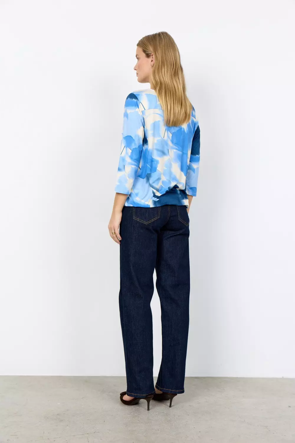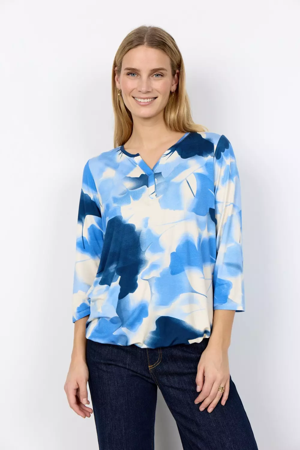 SC-MARICA AOP 351 er en bluse laget av 93 % lyocell og 7 % elastan. Blusen har en diskré halsutringning med et lite V-snitt og et elegant blomstertrykk, komplementert av 3/4-ermer. Bruk den med skreddersydde bukser for et raffinert utseende eller jeans for et koselig hverdagsantrekk.